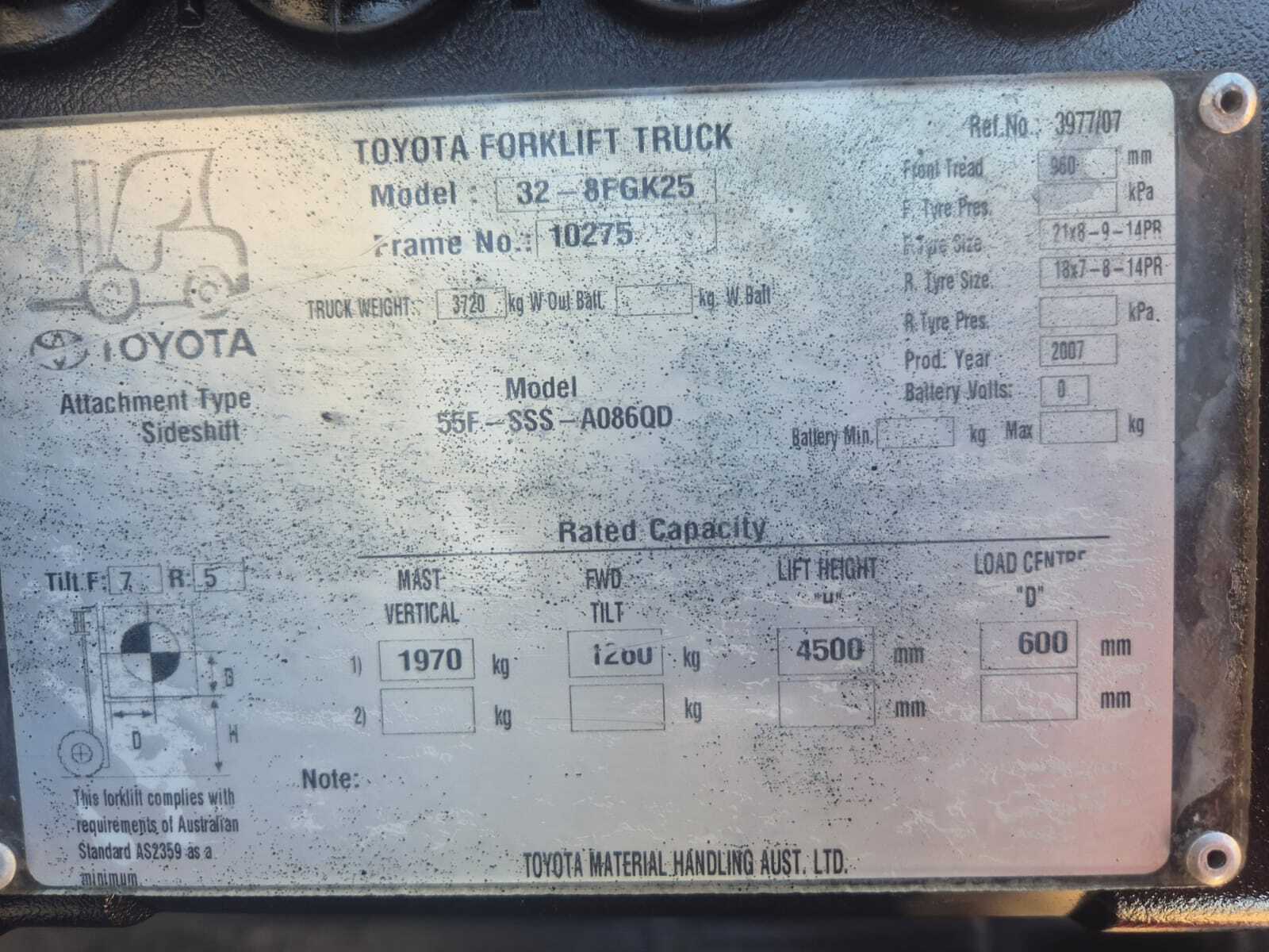 2007 Toyota LPG Counterbalance Forklift in terrific condition, comes with the below features: