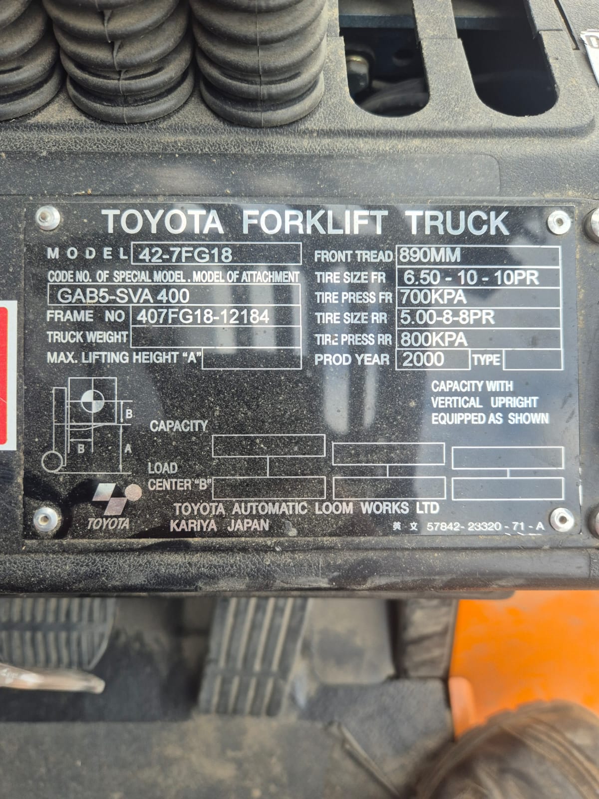 2000 Toyota 1.8T LPG Forklift with Container Mast