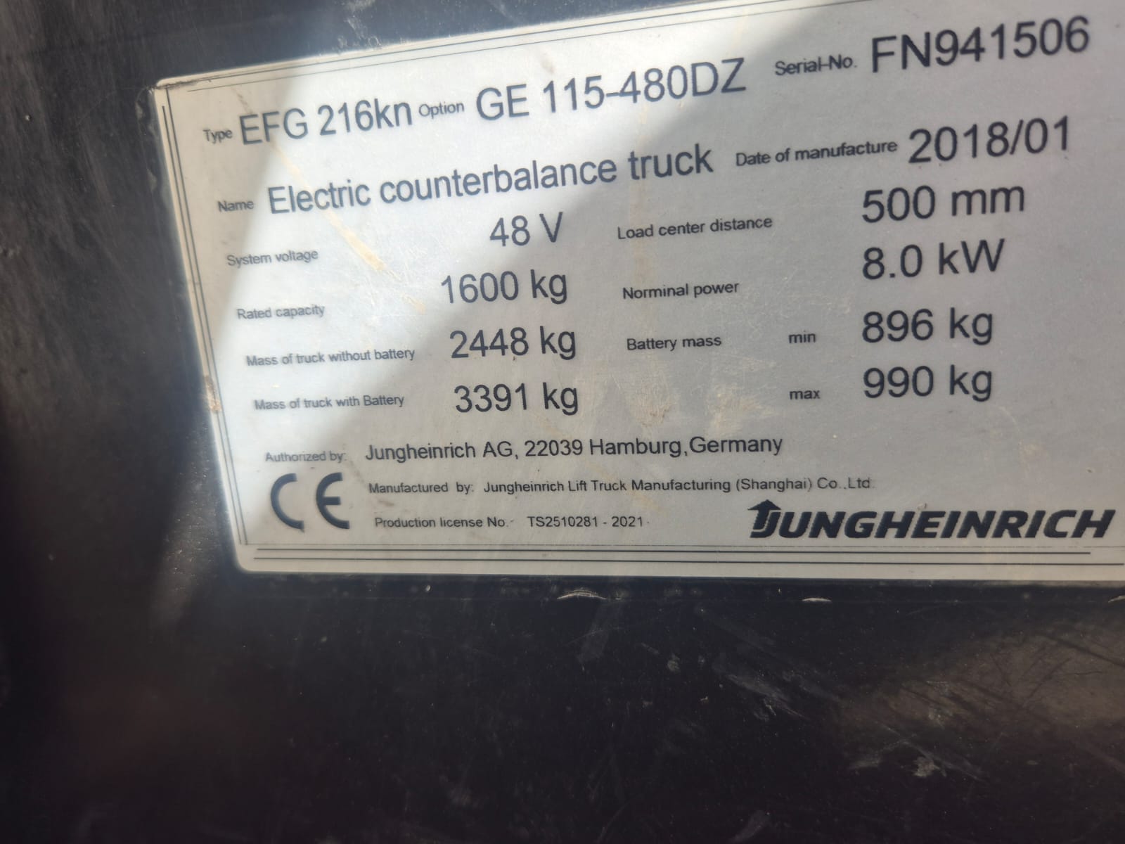 2018 Jungheinrich 1.6T Electric Forklift with Container Mast