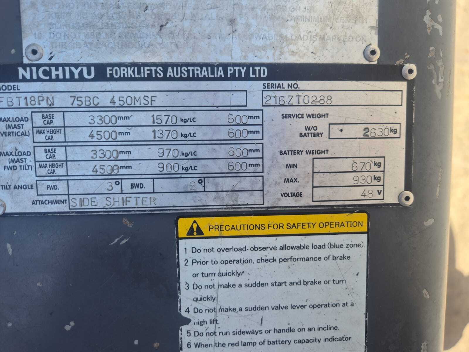 2010 Nichiyu Electric Counterbalance Forklift in great condition, comes with the below features: