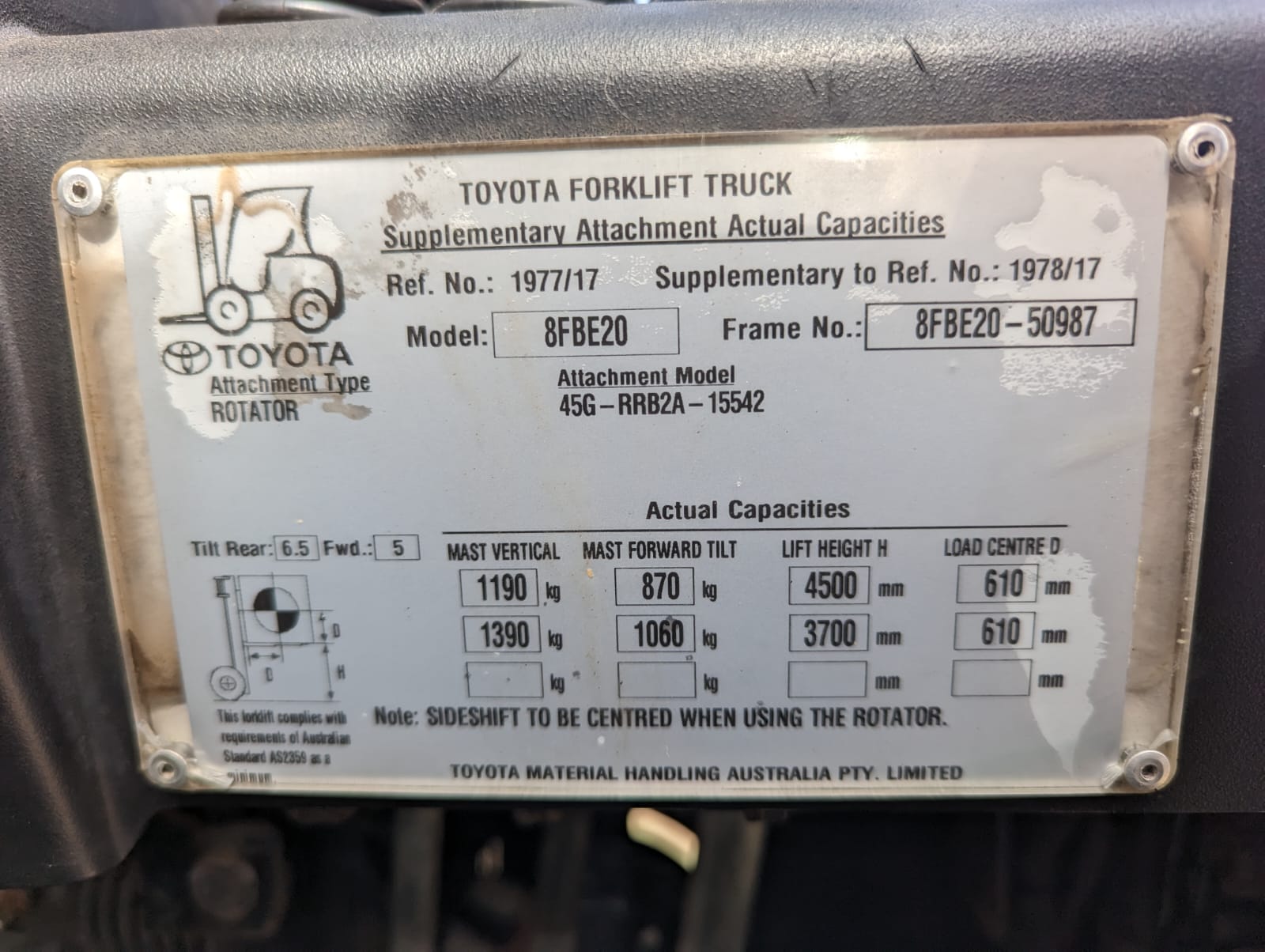 2017 Toyota 3 Wheel 2T Electric Forklift with Container Mast in terrific condition, comes with the below features: