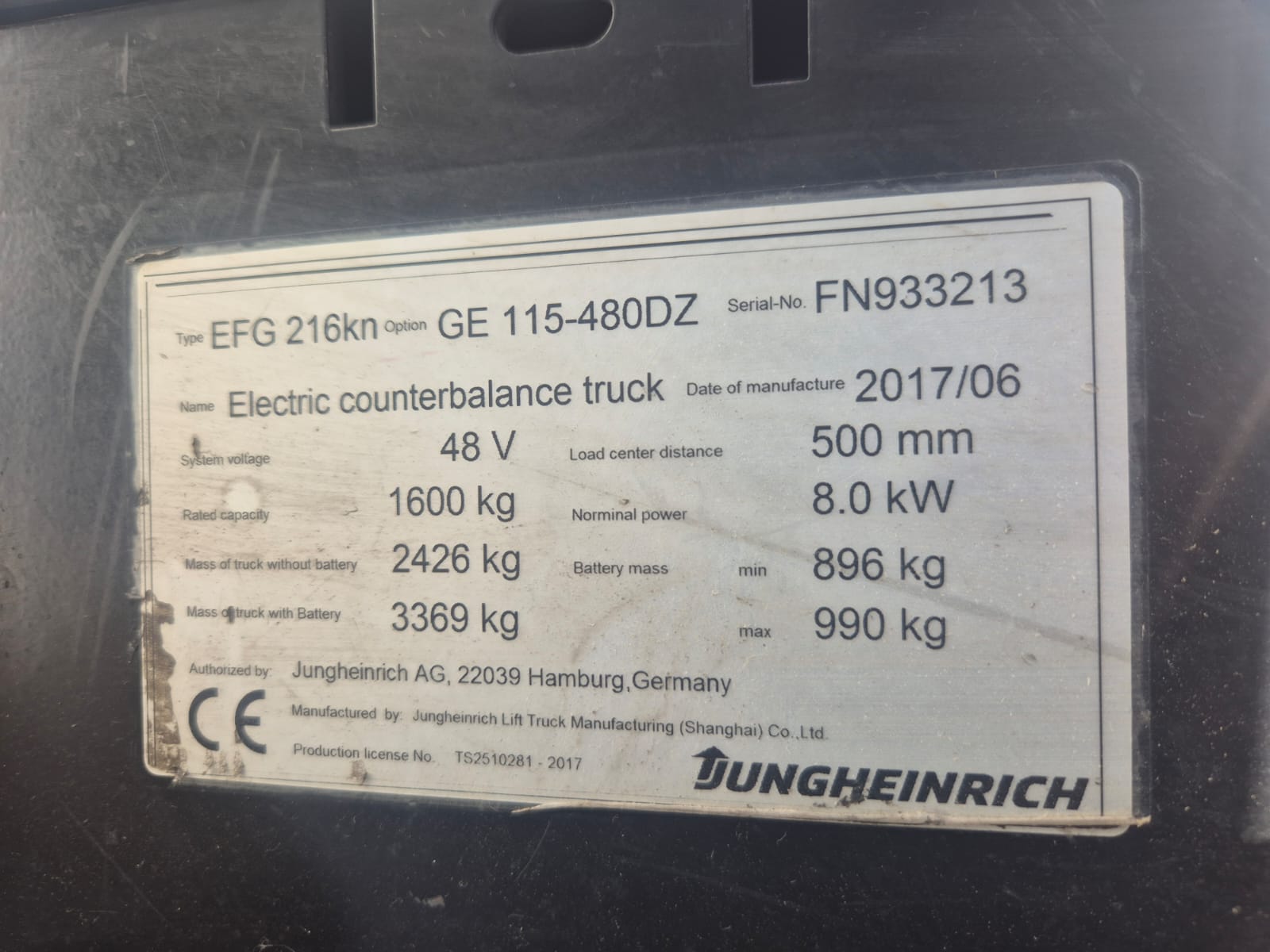 2017 Jungheinrich 1.6T Electric Forklift with Container Mast